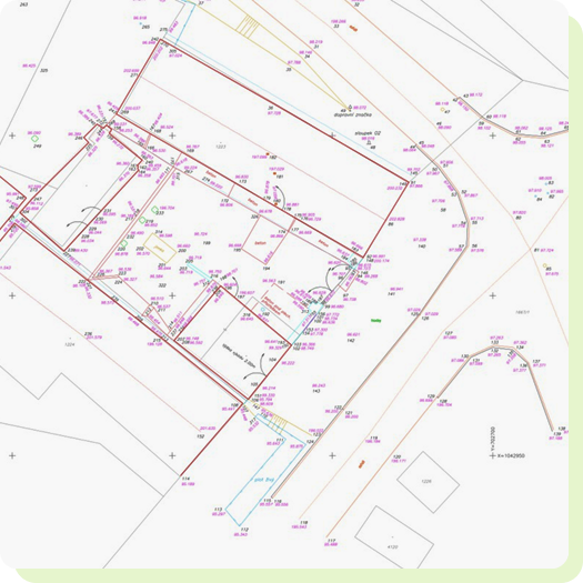 Zaměření polohopisu a výškopisu jako podklad pro projektovou dokumentaci (rodinný dům, komerční objekt, infrastruktura).